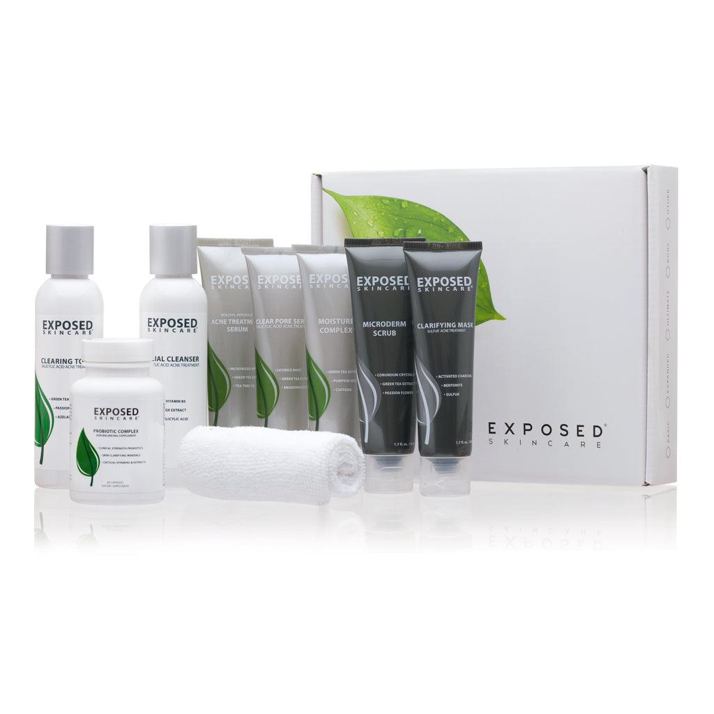 The basics plus our Clarifying Mask, Microderm Scrub & Probiotic Complex.